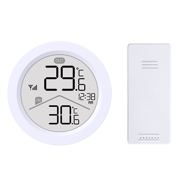 This electronic thermometer features a large clear display and a long-range wireless outdoor sensor (up to 60 m in open field), ideal for home, garden, greenhouse or shelter.